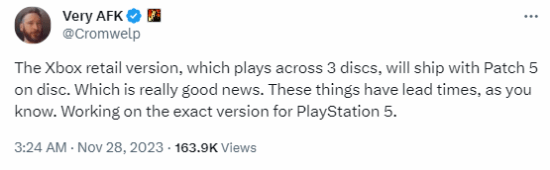 今日,拉瑞安发行总监Michael Douse确认XSX|S版本的《博德之门3》将附带5号补丁,而PS5版的补丁还在开发中。此外,Xbox上数字版的《博德之门3》安装大小仍未公布,但Douse表示稍后就会告诉玩家。