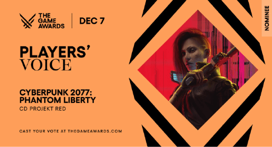 CDPR官微今日发文,为《赛博朋克2077:往日之影》TGA“玩家之声”奖项拉票。