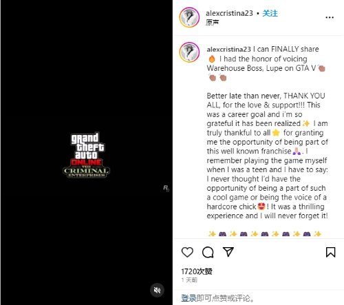 在经过大量的讨论后,不少粉丝们将答案指向了Alexandra C. Echavarri Lecároz并不停询问她是否扮演了女主,而Lecároz终于在自己的Ins上回应了此事,坦白了她确实参与了《GTA》,不过是《GTAOL》。