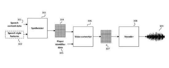 该专利描述了一个过程,在这个过程中,玩家“输入代表语音内容的数据”,然后这些数据通过合成器模块、语音转换器和声码器,根据样本生成新的对话。其理念是让玩家能够在游戏中发出自己的声音,最明显的例子便是让主角听起来像玩家。