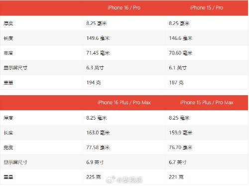 iPhone 16 Plus / Pro Max 将配备 6.9 英寸显示屏,此前 iPhone 15 Pro Max 为 6.7 英寸。