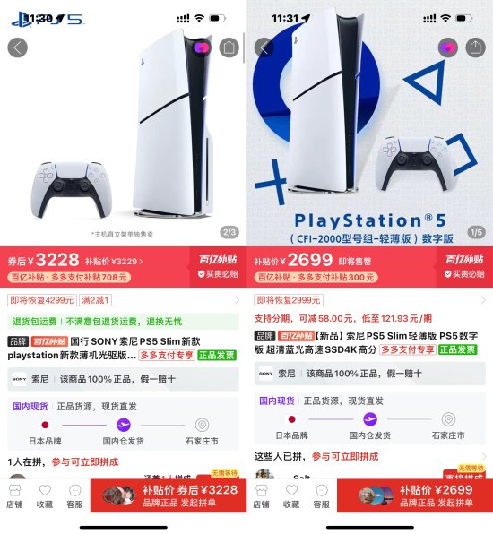 新款PS5国行版于今日正式发售,官方数字版售价2999元、光驱版售价3599元。而在拼多多百亿补贴,国行的两个版本再次迎来降价,数字版售价2699元,光驱版售价3228元,相比于上次的2729元和3269元又降了一些。感兴趣的朋友可以看下,不着急的再等等也许还能再降。