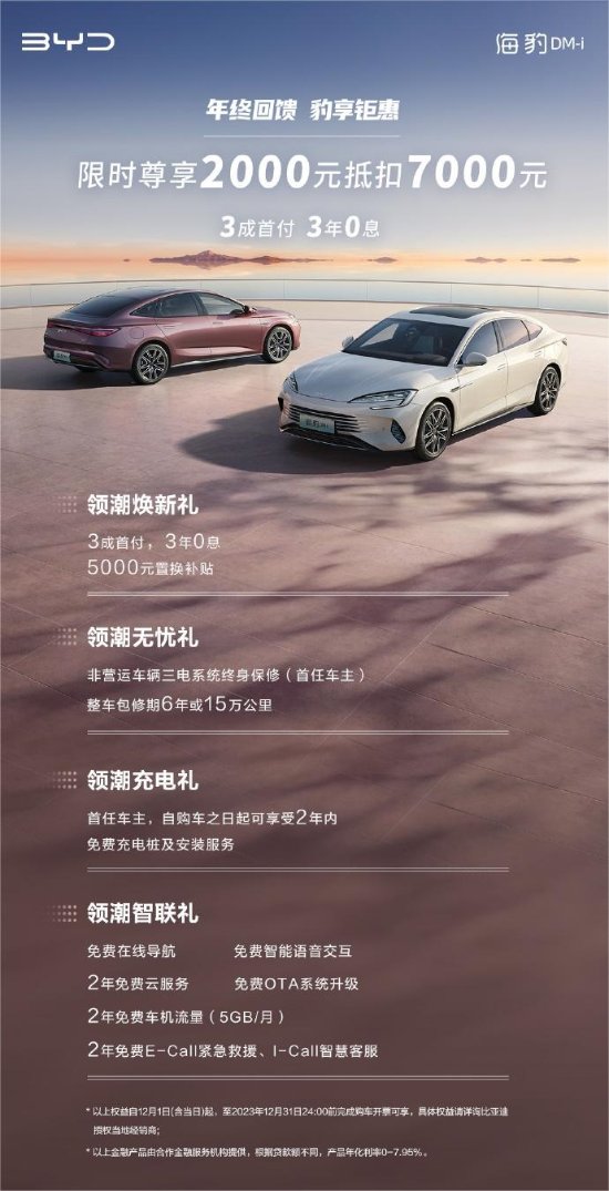 海豹冠军版可享2000元抵9000元购车款;