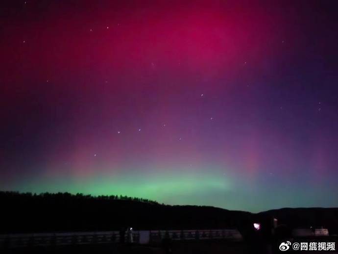 据中国气象爱好者:太阳风暴正在给高纬度地区带去大范围极光,黑龙江北部、内蒙古呼伦贝尔等地今晚再次记录到极光!今夜东北的朋友可以留意天空,理论上最南到北京也能看到微弱的极光!同时也有网友晒出在漠河当地拍到的极光照片。