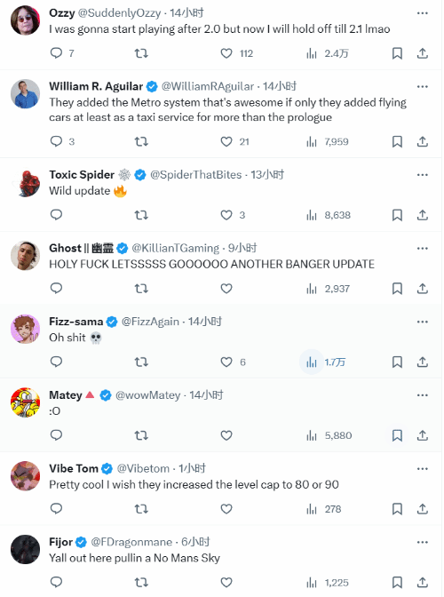 而网友们对此次更新内容的突然公布也非常吃惊,有玩家表示2.1版本的更新内容这么多太疯狂了。尤其是在玩家们认为不会再获得任何更新的情况下。