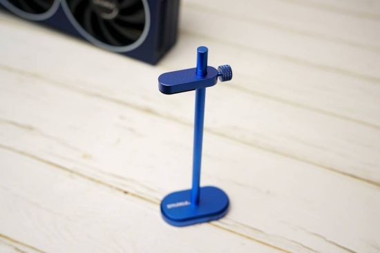 考虑到显卡的体积以及重量,Sparkle(撼与科技)Intel Arc A750 TITAN OC很贴心地附赠了一个铝合金的显卡支架,这个支架可以自由调整高度,而且蓝色的外观与显卡保持高度一致,视觉效果和实用性都兼顾得到。