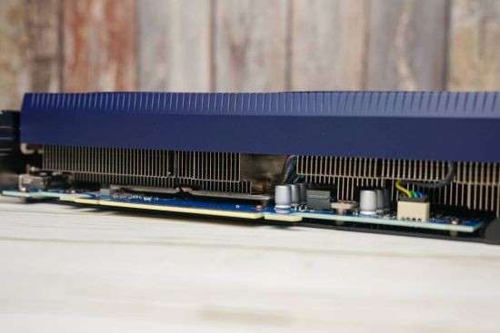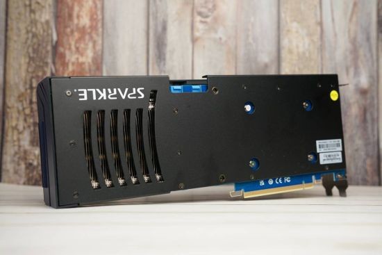 出于保修的考虑,这里就不对显卡进行拆解了。但是从显卡散热器的侧面可以看到,Sparkle(撼与科技)Intel Arc A750 TITAN OC拥有覆盖整卡的大尺寸高密度散热片以及镀镍热管,散热规模是相当的强悍。