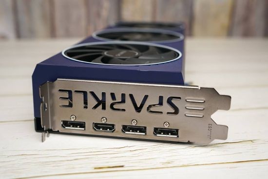 接口方面,Sparkle(撼与科技)Intel Arc A750 TITAN OC标配的是3个DP 2.0和一个HDMI 2.0的接口,它可以支持最高8K分辨率的输出,并向下兼容各类高分高刷显示设备,打游戏或者做生产力做多联屏都是没问题的。