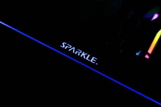 有别于常见的显卡LOGO灯,Sparkle(撼与科技)Intel Arc A750 TITAN OC的LOGO灯是带有ThermalSync专利技术的,该技术使用了额外的温度传感器进行测温,显卡在工作的时候会有对应的颜色来显示温度状态,这个在搭配如今普遍侧透的机箱时会非常方便,就算是不打开监测软件也可以了解到显卡温度是否正常。