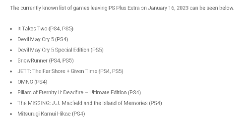 据twistedvoxel消息,欧美服PlayStation官网确认了2024年1月份二档游戏离库时间为1月16日。