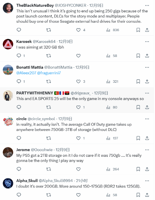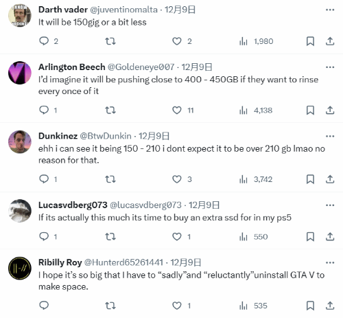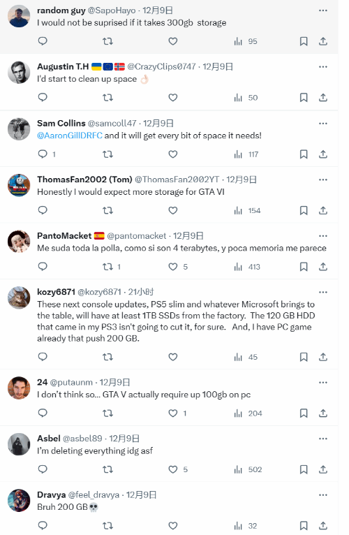 在评论区有玩家认为可能会更大,甚至有网友打算专门为GTA6单独分出1TB的硬盘空间。