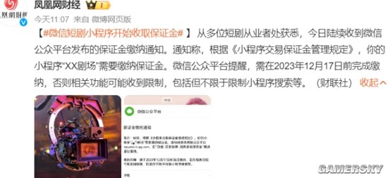 据36氪报道,从多位短剧从业者处获悉,今日陆续收到微信公众平台发布的保证金缴纳通知。
