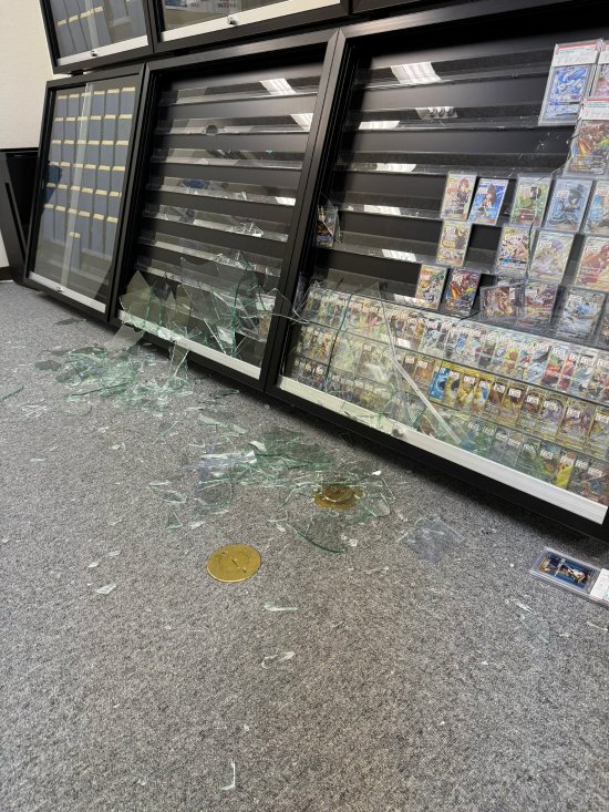 这是一家专门经营宝可梦集换卡的店铺,根据商店所发推文以及监控视频显示,劫匪闯入店内后,迅速打碎展柜玻璃,随后将一侧展柜宝可梦集换卡牌洗劫一空,装入随身携带的包中离开。案发仅仅两分钟后,当安保公司和警察赶到时,劫匪已不见踪影。不过本次事件万幸无人受伤。