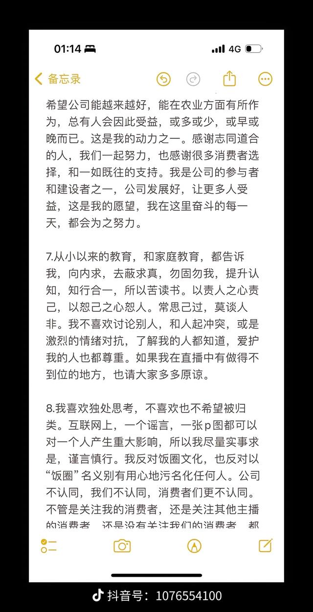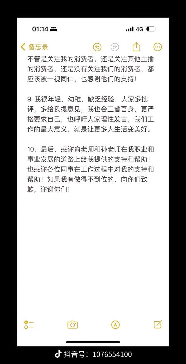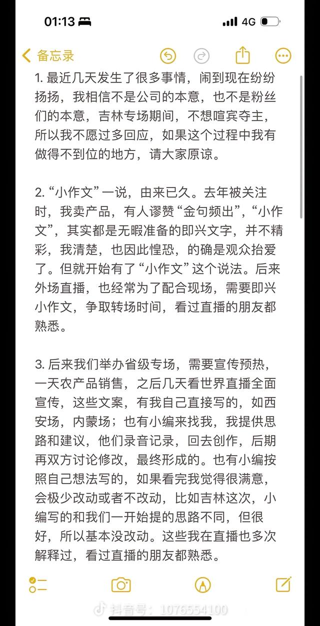 董宇辉称,吉林场的“小作文”小编思路和自己一开始的不同,但很好,所以基本没有改动。董宇辉表示自己录制的文案,都会认真对待。