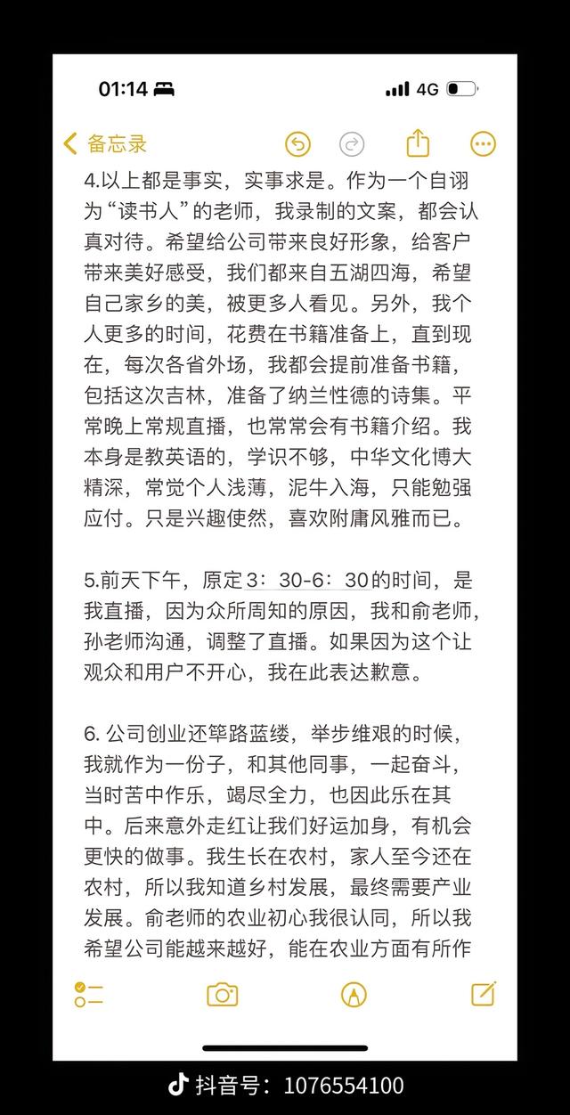 他表示,东方甄选举办省级专场的这些“小作文”文案,有自己直接写的,比如西安场、内蒙古场;也有自己给小编提供思路和建议,他们录音记录回去创作,后期再双方讨论修改,最终形成的;还有小编按照自己想法写的,如果自己感觉满意,也不会改动或者少改动。