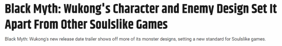 外媒Gamerant发文盛赞《黑神话:悟空》,称其独具特色的角色设计“为魂类游戏树立了新标准”。