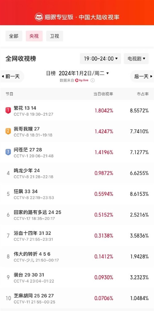 1月3日消息,电视剧《繁花》于去年12月27日在CCTV-8黄金档、腾讯视频开播。