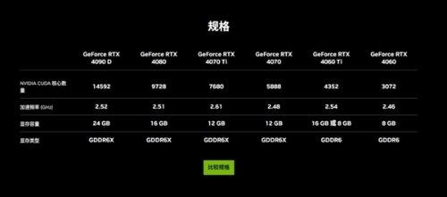 新产品仍会配备24GB的GDDR6X显存,位宽是384位,速率为21 Gbps,整卡功耗也从RTX 4090的450W降至425W,同时RTX 4090 D也不支持超频。