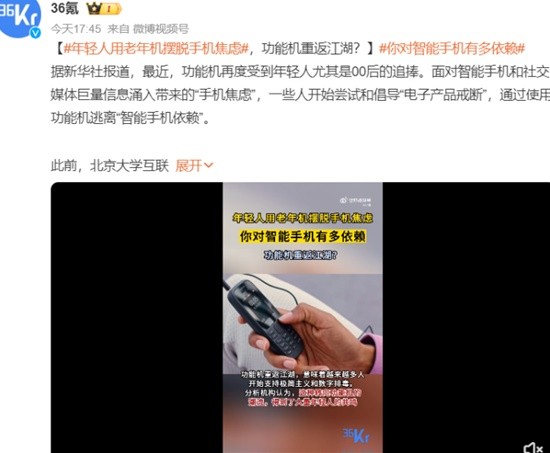 面对智能手机和社交媒体巨量信息涌入带来的“手机焦虑”,一些人开始尝试和倡导“电子产品戒断”,通过使用功能机逃离“智能手机依赖”。