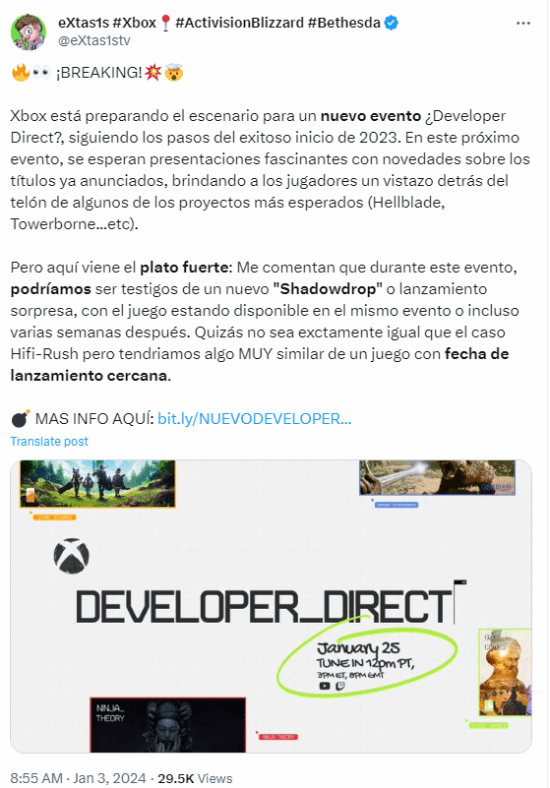 与2023年一样,该活动可能会在1月的最后一周举行。预计将重点展示《地狱之刃2》和《宣誓》等游戏,因为它们是Xbox明年游戏阵容中非常重要的3A大作。