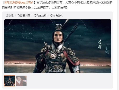 近日,曾在《爱情公寓》的“决战紫禁之巅”中化身吕布的孙艺洲在视频表示自己十分纠结要选哪款吕布的造型,毕竟全网都在让他COS吕布,之后《王者荣耀》官方也来评论区凑热闹,表示会搞定盔甲。