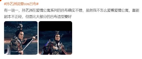 相关话题迅速登上热搜,网友纷纷表示支持,同时在评论区也表示了对当时《爱情公寓》中“决战紫禁之巅”片段中吕布造型的认可,不少人都表示孙艺洲的吕布是内娱史上还原度前几的一版了。