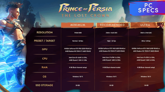 3、《波斯王子:失落的王冠》PC配置需求揭晓