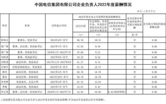 中国电信年薪最高的是董事长、党组书记柯瑞文,达到了90.78万元。