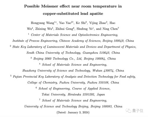 昨日,来自中科院、北京科技大学、华南理工大学、北京 2060 科技有限公司、华中科技大学、福州大学、日本东海大学的大佬们(网名“导派大集结、真可爱呆、洗老师、关山口、火机仙人、青蛙、陈老师”等)发布最新联合研究成果:铜代铅基磷灰石在室温附近可能存在迈纳斯效应(超导特征之一)。