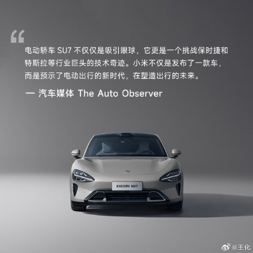 除了主流媒体外,不少国外专业汽车媒体也不吝啬对于小米SU7的称赞。汽车媒体 The Auto Observer称,(小米)电动轿车SU7不仅仅是吸引眼球,它更是一个挑战保时捷和特斯拉等行业巨头的技术奇迹。小米不仅是发布了一款车,而是预示了电动出行的新时代,在塑造出行的未来。
