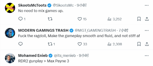 不过,一些玩家却有不同的想法,有玩家认为,布娃娃系统并不需要,这会让游戏变得更加僵硬,也不符合实际。而另外还有玩家表示,《荒野大镖客:救赎2》的枪战系统要比《马克思佩恩3》更好。