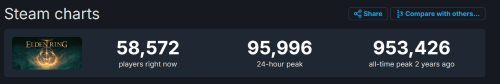 1.《艾尔登法环》热度再起!Steam24小时在线数超9万
