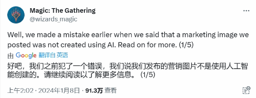 “好吧,我们之前犯了一个错误,我们说我们发布的营销图片不是使用人工智能创建的。”