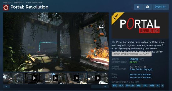 《传送门:革命》目前已在Steam免费推出,为游戏的大型MOD,游玩需要拥有《传送门2》本体,目前评价“好评如潮”。