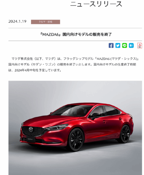 1月19日,日本马自达发布公告:马自达6 MAZDA6将于4月中旬在日本停产停售,未来无后继车型。 ?