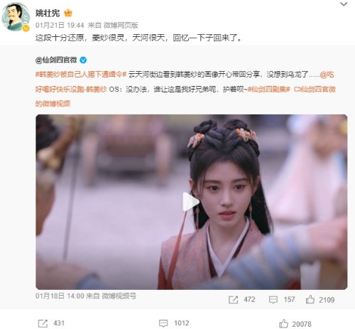 近日,《仙剑奇侠传四》电视剧开播,软星科技总经理姚壮宪同样也在追剧,发博表示:这段十分还原,菱纱很灵,天河很天,回忆一下子回来了。相关话题也登上热搜,而评论区的网友则反应不一。