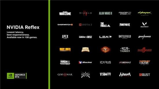 自 2020 年 9 月首次亮相以来,超过100款游戏或在发布时即支持NVIDIA Reflex ,或新增对NVIDIA Reflex 的支持。其中包括《Apex 英雄》(Apex Legends)、《使命召唤:现代战争 III 2023》(Call of Duty: Modern Warfare III)、《使命召唤:战区》(Call of Duty: Warzone)、《反恐精英:全球攻势》、《堡垒之夜》(Fortnite)和《守望先锋》“归来”(Overwatch 2),以及《赛博朋克 2077》(Cyberpunk 2077 )、《巫师 3:狂猎》(The Witcher 3: Wild Hunt)、《暗黑破坏神 IV》(Diablo IV)、《遗迹 2》(Remnant 2)、《战神》(God of War)、《微软模拟飞行》(Microsoft Flight Simulator)、《荒野大镖客:救赎 2》(Red Dead Redemption 2)、《瑞奇与叮当:时空跳转》(Ratchet & Clank: Rift Apart)和《漫威蜘蛛侠:重制版》(Marvel's Spider-Man Remastered)等广受好评的热门游戏。