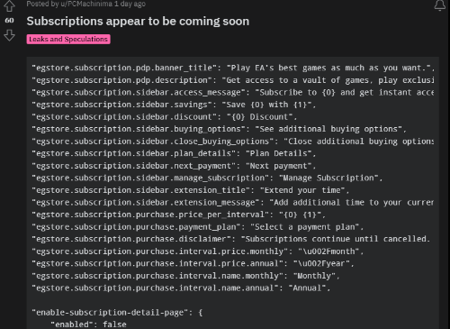 根据泄露的数据,Epic平台的订阅服务提供包月和包年的选项,订阅服务中可能包含了EA PLAY计划,类似Steam和XGP的捆绑服务模式,该服务可享受的权益包括定期试玩、额外折扣等。