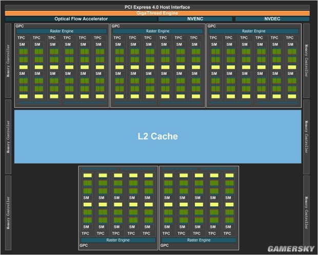 RTX 4070 SUPER显卡所采用的AD104-350核心拥有5个GPC,和完整的AD104-400核心相比只缩减了2个TPC,在规格参数上显然更接近RTX 4070Ti显卡,这意味着玩家只要花费RTX 4070显卡的钱就能买到接近RTX 4070Ti的性能,可见这次NVIDIA的满满诚意。