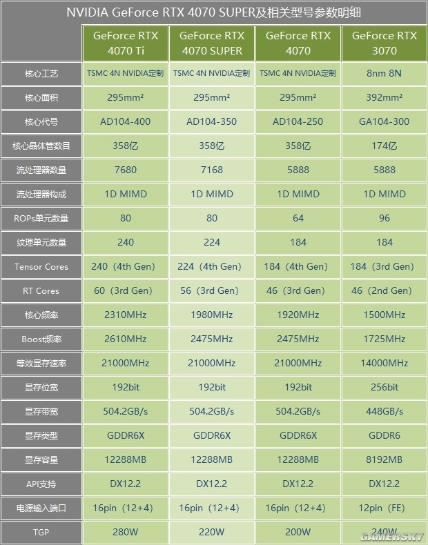 其中RTX 4070 SUPER将于1月17日首先和广大游戏玩家们见面,成为NVIDIA在2024年发布的第一款新游戏显卡。