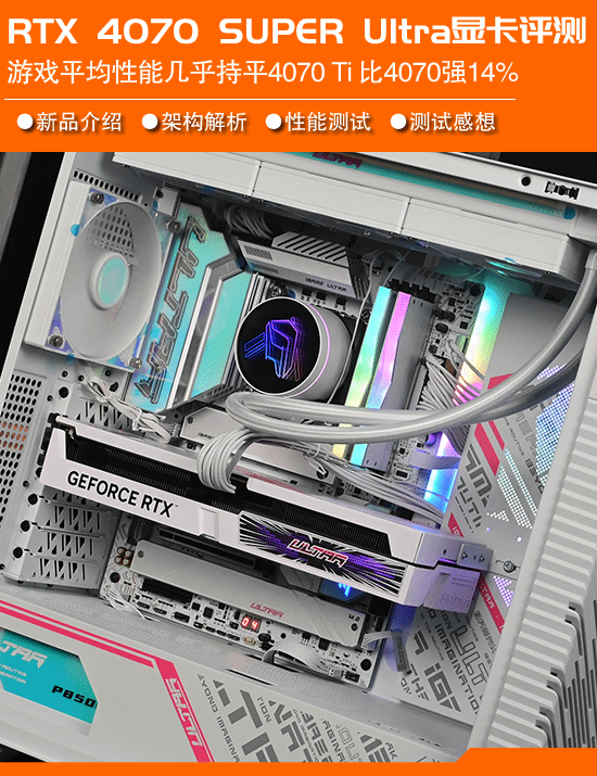 值得一提的是,本次评测我使用的显卡是来自七彩虹的iGame Geforce RTX 4070 SUPER Ultra W OC 12GB(下简称:RTX 4070 SUPER Ultra)显卡。该显卡延续了Ultra W家族的一贯风格,外观时尚,色彩鲜明。