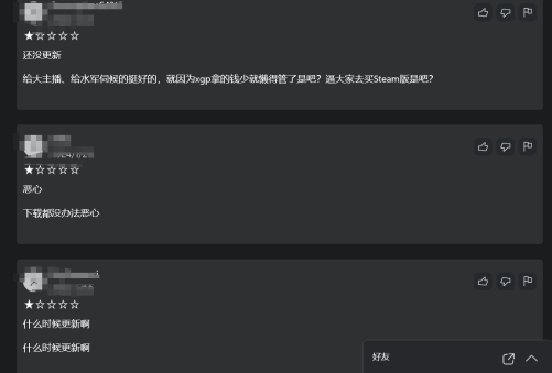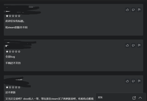 游戏尽管首发XGP,但两边的口碑差距巨大,该游戏在XGP平台就只有1,9的评分,究其原因,貌似官方在XGP上发布的是游戏的预览版本,要比Steam落后好几个大版本, 不仅有着诸多的优化问题,甚至多人联机也无法游玩,还会出现黑屏闪退,这让通过XGP游玩的玩家们纷纷打出差评,直呼:“XGP低人一等。”