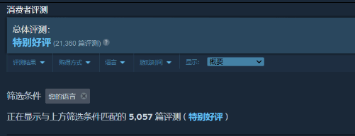 目前游戏在Steam的好评率为93%,共有21360条评价,口碑极佳。