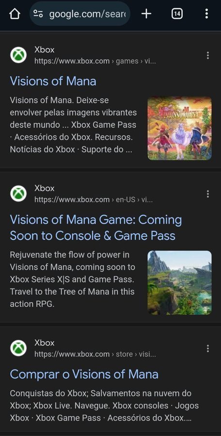 在 Google 上搜索“Visions of Mana”Xbox,第一个搜索结果就是该游戏的 Xbox Store页面的链接,同样显示该游戏即将登陆 Game Pass,不过目前官方已将Game Pass相关页面信息删除。