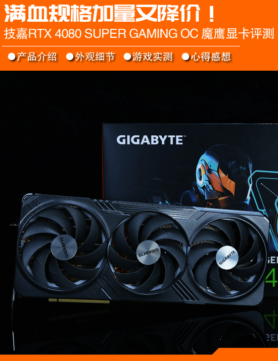 本次我们为大家带来技嘉RTX 4080 SUPER GAMING OC 魔鹰 16G显卡的性能实测,来看看这款RTX 4080 SUPER显卡在外观、做工、散热等方面的表现如何,并实际测试RTX 4080 SUPER在AI制图、3D渲染等方面有怎样的表现,游戏性能跟RTX 4080以及上代的RTX 3090 Ti相比能领先多少,与RTX 4090还有多少的性能差距。