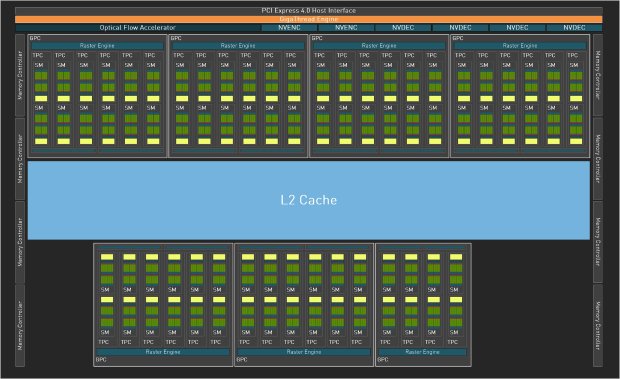 RTX 4080 SUPER所使用的是完整的AD103 GPU核心,采用TSMC 4N工艺制程,核心面积为379mm2,整合459亿晶体管。共拥有7个GPC,其中6个GPC内包含6个TPC,另外1个GPC内包含4个TPC,每个TPC拥有两组SM,共计为80组SM,即10240个CUDA。