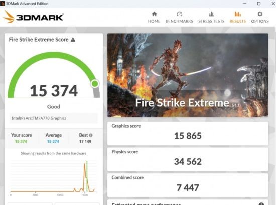 3DMark FireStrikeExtreme项目,得分为15374。