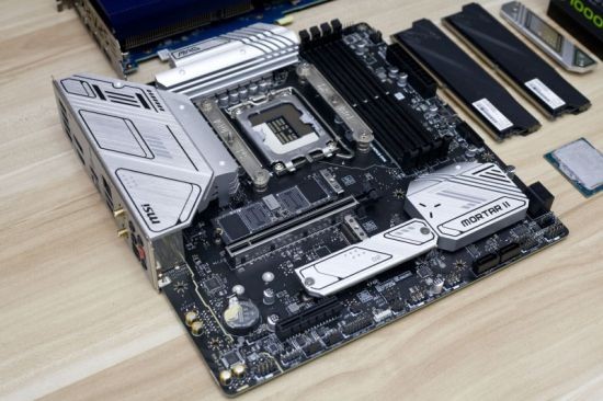 主板方面,这里我使用的是微星MAG B760M MORTAR WIFI II,它是标准的M-ATX板型,颜色方面依然是MORTAR系列经典的黑色PCB 银色散热片设计,CPU方面可以支持12、13和14代三代酷睿处理器。