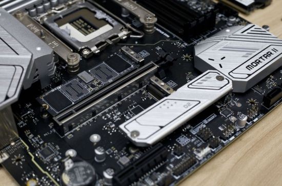 有别于一代的B760迫击炮,微星MAG B760M MORTAR WIFI II提供了三个PCIe 4.0的M.2接口,其中一槽和三槽是自带散热马甲设计,变化还是比较明显的,