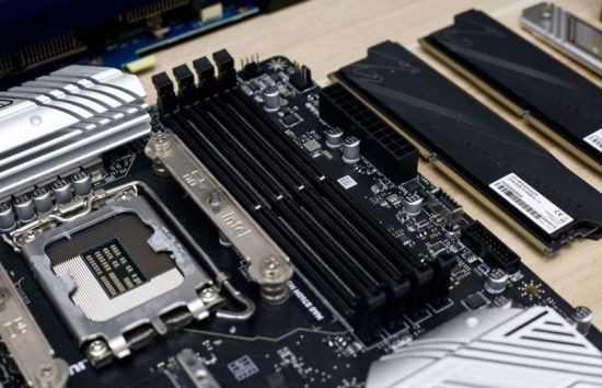 四根DDR5内存槽,它可以支持最大192G的内存安装,频率上限可以去到7800 MHz(OC),并支持XMP 3.0以及Memory Try It!超频技术。